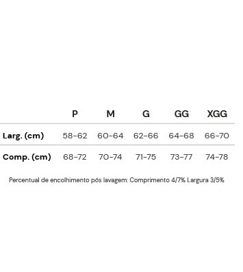 Siga abaixo essa tabela para ter como referencia e escolher qual modelo e tamanho melhor encaixa no seu estilo: